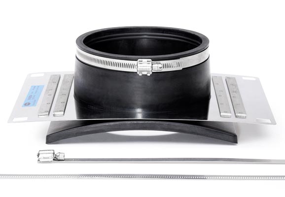 Das Anschlusselement T-Flex dichtet über die Rohraußenwandung und dient zum nachträglichen Anschluss an Hauptrohre mit glatter Oberfläche.