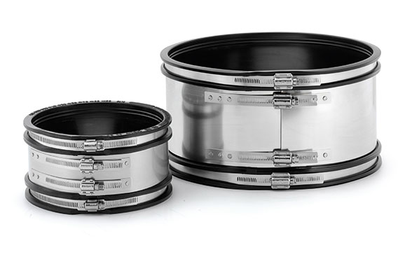 Die Kupplung Canada Plus Typ 2A dient zur Spitzendverbindung von Steinzeugrohren innerhalb einer Nennweite und ist einsetzbar für Außendurchmesser-Differenzen von maximal 6 mm.